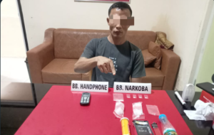 Dari penangkapan pelaku ini berhasil diamankan barang bukti berupa 5 paket Narkoba jenis shabu-shabu yang dibungkus dengan plastik bening, (Bruto 1.55 Gram), HP Nokia, botol plastik merk Redoksom, kotak rokok On Bold, 2 ball plastik klip putih bening, plastik klip putih bening, bong dan korek api gas.