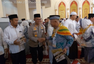 Kapolres Rokan Hulu (Rohul) AKBP Budi Setiyono SIK MH, mendampingi Bupati H Sukiman dalam pemberangkatan Jamaah Calon Haji (JCH) Kabupaten Rohul Tahap 1 Tahun 1444 H / 2023 M, sebanyak 368 Orang, di Masjid Islamic Center Rohul, Selasa (30/5/2023) pukul 04.00 Wib.