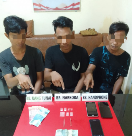 Dari penangkapan ketiganya ini, berhasil kita amankan barang bukti yaitu, 4 paket Narkoba jenis shabu-shabu yang dibungkus dengan plastik bening, (Bruto 0.40 Gram), 2 HP Samsung, HP Redmi, uang 2000 ribu pembalut shabu-shabu, 3 plastik bening, 2 kaca pirek dan uang Rp 450 ribu uang hasil penjualan Narkoba.