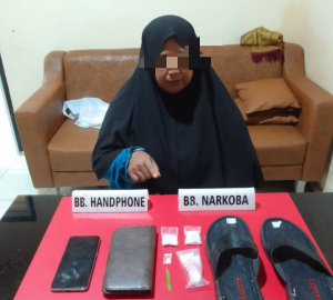 Barang bukti yang berhasil diamankan 3 paket Narkoba jenis shabu-shabu yang dibungkus dengan plastik bening, HP Oppo, dompet kulit, sandal, seball plastik klip bening dan sendok shabu-shabu.