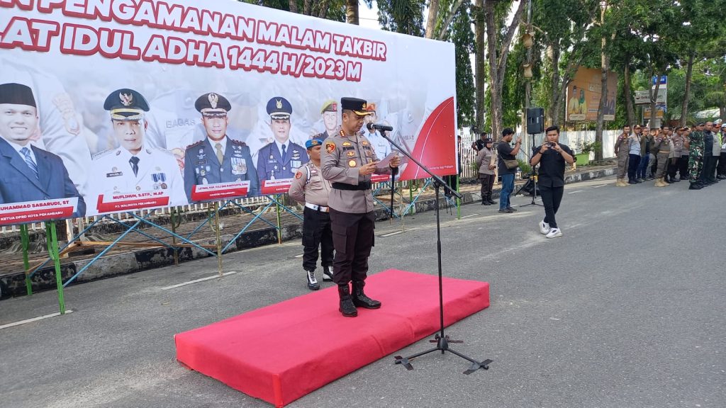 Dalam arahannya, Kapolresta Pekanbaru, Kombes Pol Jefri RP Siagian mengatakan, bahwa pengamanan ini merupakan bentuk komitmen Polri, guna memberikan rasa aman dan nyaman kepada masyarakat dalam merayakan malam takbiran hari raya Idul Adha 1444 Hijiriah.