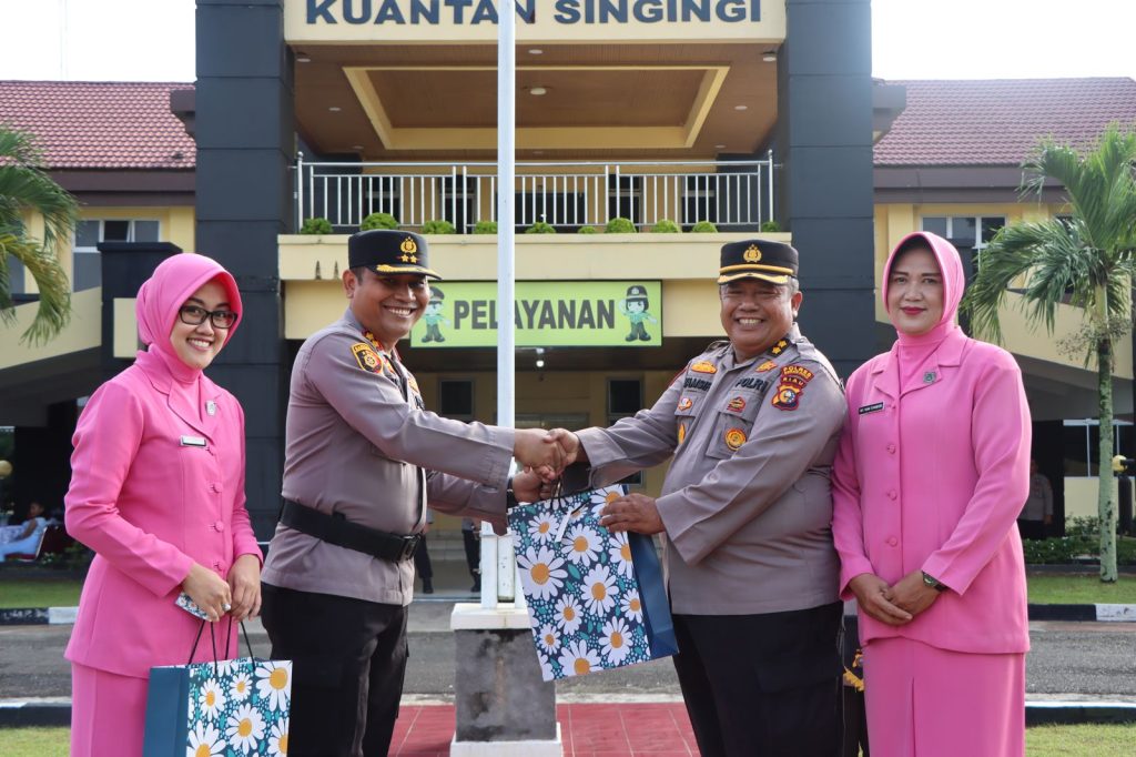 Kapolres Kuansing dalam sambutan Upacara pelepasan Purna Bhakti AKBP. Syamsir menyampaikan ucapan ” Terimakasih atas pengabdian dan dedikasi yang sudah AKBP Syamsir berikan kepada institusi Polri khususnya Polres Kuansing selama ini. Kami mendoakan semoga bapak dan ibu Syamsir selalu diberikan kesehatan dan kita tetap dapat menjaga tali silaturahmi seperti yang sudah terbina selama ini “, ucap Kapolres .