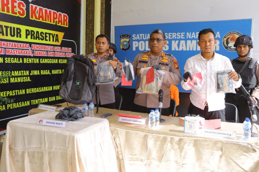 Konferensi Press Polres Kampar, Pelaku Narkoba di Tangkap Dengan Barang Bukti 3,3 Kilogram
