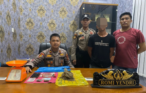 “Barang Bukti berupa Dua Paket kecil Narkotika jenis Daun Ganja Kering, Satu Paket Besar Narkotika jenis Daun Ganja Kering, 12 Bungkus plastik Bening, Satu Unit Timbangan warna Jingga atau Oren merk Tanaka, Satu Unit Hand Phone Merk Oppo A54 warna Biru, Uang tunai sebesar Rp 100.000, Satu Lakban warna Putih, Satu Unit Hekter Kangaro, Satu Kotak anak Hekter, Satu Plastik Assoy warna Biru dan Satu potongan Plastik warna Kuning,” rinci Kapolsek.