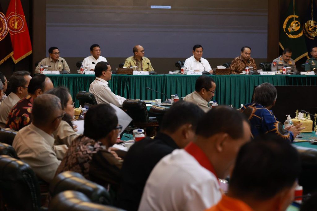 “Saya berterima kasih atas kehadiran pada Rapat Pleno Komite Kebijakan Industri Pertahanan (KKIP) kali ini,” ucap Menhan Prabowo.