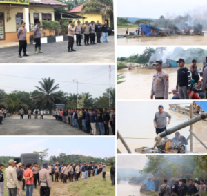 Operasi Penertiban Penambangan Emas Tanpa Izin ( PETI ) Dialiran Sungai Singingi Desa Tanjung Pauh – Singingi Hilir. 30 Unit Rakit PETI berhasil Dihancurkan.