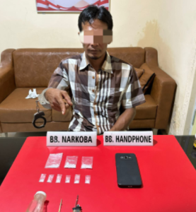 “Dia langsung ditangkap dan melakukan penggeledahan yang disaksikan oleh Perangkat Desa setempat ditemukan 9 narkoba jenis sabu-sabu yang dibungkus dengan plastik bening, 3 (tiga) paket diletakkan didalam kantong celana depan sebelah kiri dan 6 (enam) paket diletakkan di atas rumput didepannya.”terang Kasat.