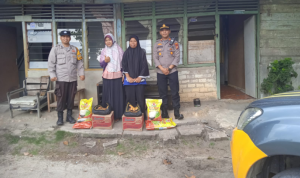 ” Adapun tujuan dari kegiatan ini adalah untuk membantu meringankan ekonomi warga, dan bansos berupa beras 15 (Lima Belas) Kilo,minyak goreng 2 (Dua) liter dan mie instant 1 (Satu) Kotak kita berikan kepada ibu Sri Narni (60) dan Refni Yulianti (26) “, jelas Iptu Rejoice.