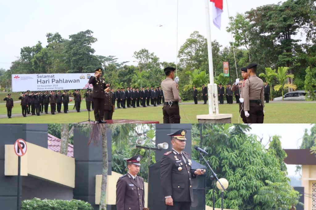 TELUKKUANTAN,Mediasynergi86.id- Dalam rangka memperingati Hari Pahlawan, Polres Kuansing menggelar Upacara Peringatan Hari Pahlawan Ke-78 Tahun 2023 bertempat di Halaman Apel Polres Kuansing, Jumat (10/11/2023) Pukul 08.00 WIB.
