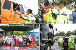 Aksi Epic kapolda Riau membuat Semringah wajah supir saat antri melewati banjir di Lintas timur Pelalawan
