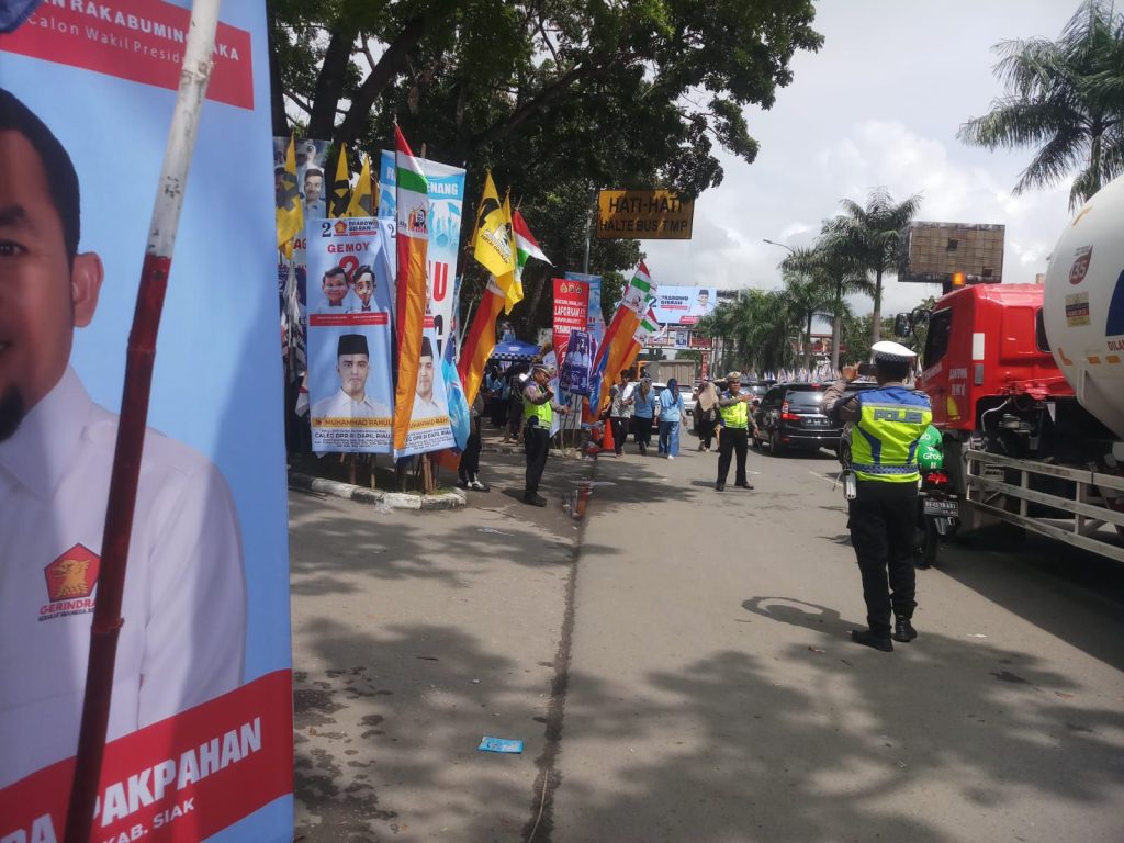 Kegiatan kampanye terbuka paslon Capres-Cawapres no urut 2 (Prabowo-Gibran) dihadiri cukup banyak simpatisan Relawan Prabowo-Gibran terpañtau arus lalu lintas kendaraan cukup padat merayap melintasi menuju lokasi areal kampanye GOR Gelanggang remaja Jl.Sudirman Pekanbaru, Personel juga melaksanakan pengaturan lalulintas di sepanjang jalan Sudirman mulai depan MTQ hingga ke seberang jl Sudirman lokasi giat depan GOR Gelanggang remaja sampai ke persimpangan Jl.Paus, guna mengantisipasi gangguan Kamseltibcarlantas areal seputaran lokasi kegiatan kampanye.