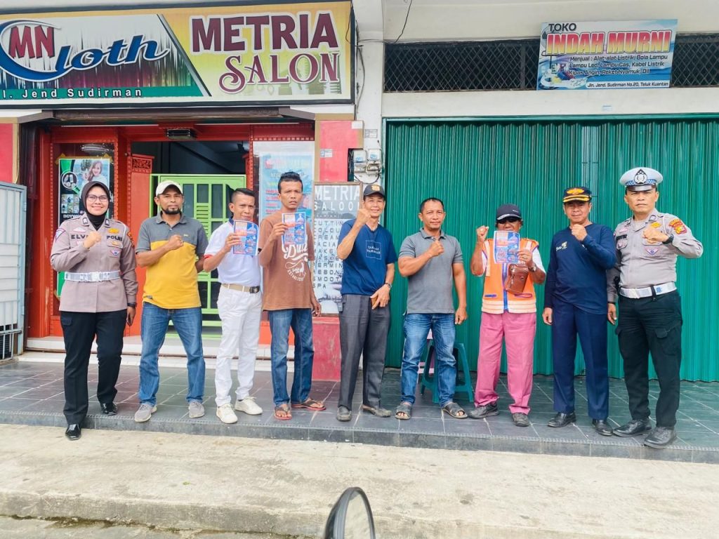Sat Lantas Polres Kuansing Gelar Kegiatan Pemasangan Stiker Dan Brosur Gunakan Helm SNI Dalam Rangka Cooling System Pemilu Damai 2024,