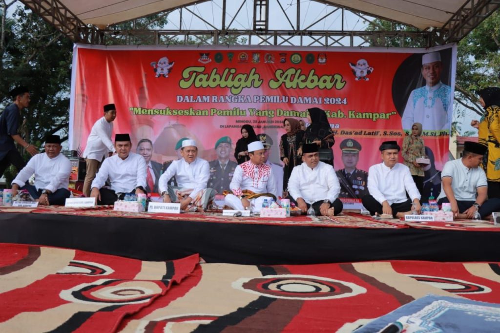 Bersama Forkopimda Kapolres Kampar Hadiri Tabligh Akbar Dalam Rangka Pemilu Damai 2024