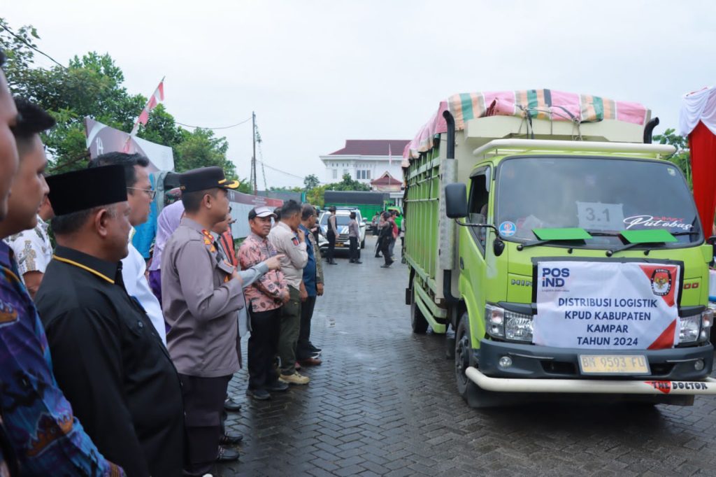 Kapolres Kampar Hadiri Pelepasan Pendistribusian Logistik Pemilu Untuk Dapil 5 dan 6