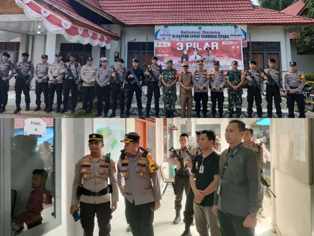 Terpantau Wakapolres Kompol Rahmat Hidayat SIK mengecek Personil di masing-masing lokasi pengamanan, termasuk Ruang Rapat Pleno PPK Tambusai Utara.
