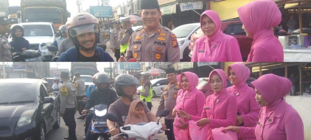 Kapolsek Siak Hulu AKP Asdisyah Mursyid S.H bersama Kanit Lantas Iptu JP. Hasibuan, Panit-I Opsnal Reskrim Iptu Sutarno S.H, Para Bhabikamtibmas, Serta Jajaran Anggota Fungsi. Tampak juga Ibu dr. Jasnimar Asdisyah selaku Ketua Bhayangkari Ranting Polsek Siak Hulu. Tepatnya di depan Kantor Bhabinkamtibmas Siak Hulu Jalan Raya Pasir Putih, sekira pukul 17.30 Wib, berkesempatan berbagi 50 Takjil kepada pengguna jalan tertib berlalu lintas, yang di pimpin langsung Kapolsek Siak Hulu AKP Asdisyah Mursyid S.H. Selasa (26/3/2024)