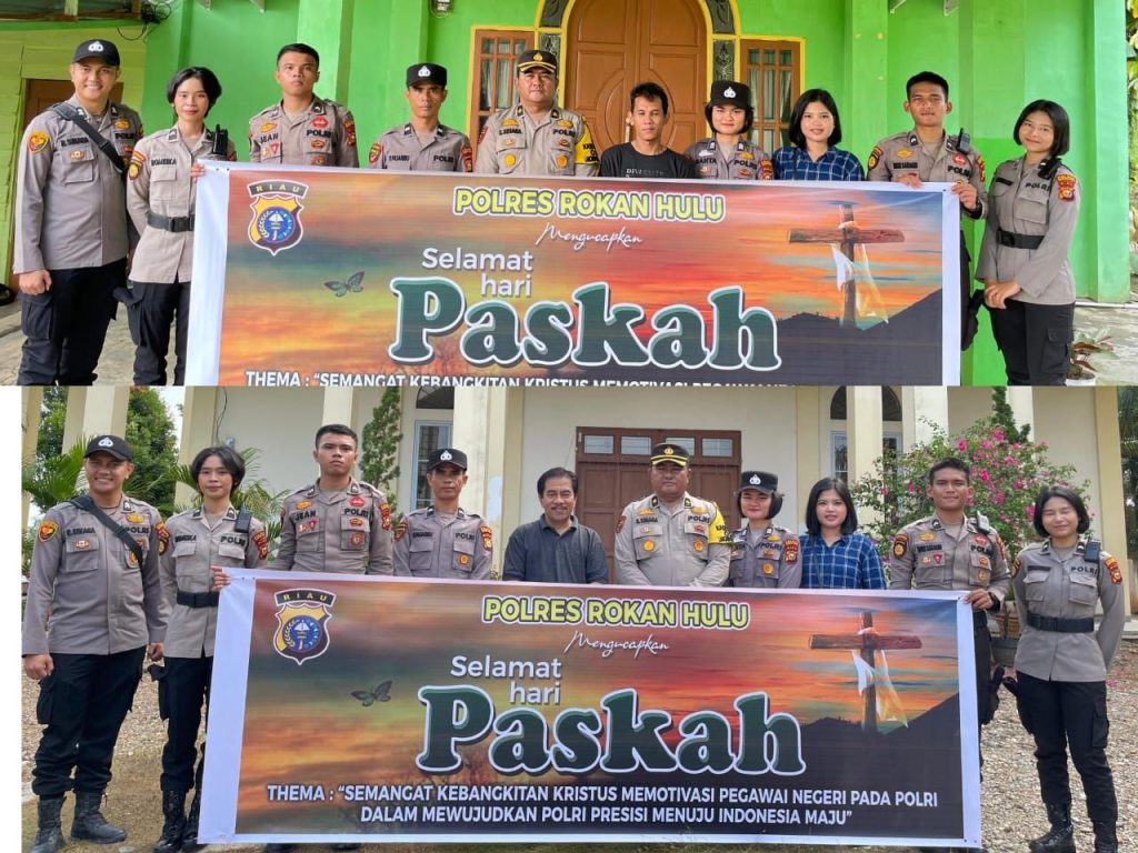 “Dasar, Surat Telegram Kapolda Riau nomor: ST/337/III/2024 tanggal 27 Maret 2024, Tema: Semangat Kebangkitan Kristus Memotivasi Pegawai Negeri Pada Polri Dalam Mewujudkan Polri Presisi Menuju Indonesia Maju,” kata Kapolres Rohul AKBP Budi Setiyono SIK MH melalui Kabag SDM Kompol Sordaman Sinaga SH.