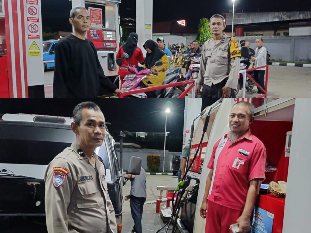 Personil Polsek Kuantan Tengah Patroli Antisipasi Praktik Kecurangan di SPBU Sungai Jering