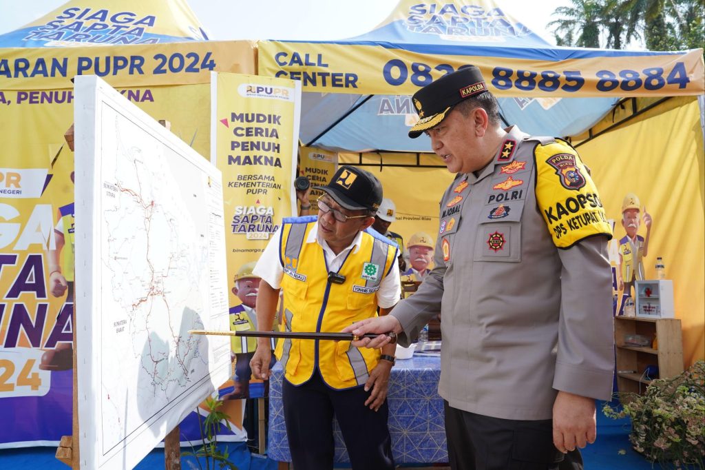 Kapolda Riau Irjen M Iqbal memantau puncak arus balik Lebaran 2024 di Tol Pekanbaru – Bangkinang (Pekbang) Minggu, (14/4/2024).