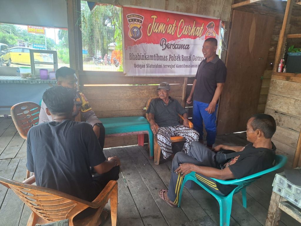 Mediasynergi86.id,ROKAN HULU- Giat Jum’at Curhat Quick Wins Presisi Polri (JC-QWPP) Bhabinkamtibmas Polsek Bonai Darussalam Polres Rokan Hulu (Rohul) dengan Tokoh Masyarakat dan Tokoh Pemuda, Desa Rawa Makmur, Jumat 19 April 2024 sekitar Pukul 09.30 Wib