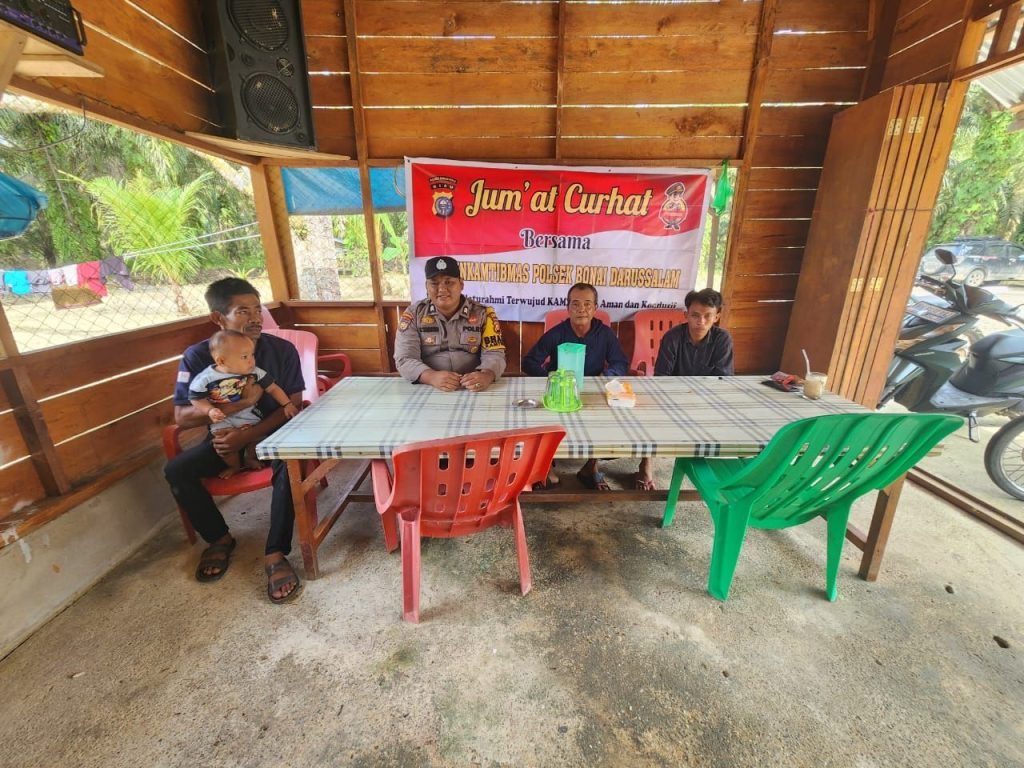 Program Jumat Curhat Quick Wins Presisi Polri (JC-QWPP) dilakukan Personil Polsek Bonaidarussalam Polres Rokan Hulu (Rohul) di Desa Kasang Mungkal, Jum’at (26/4/2024) sekitar pukul 09.30 Wib, guna terwujudnya situasi Kamtibmas yang aman dan kondusif