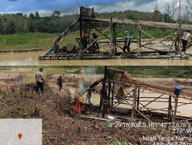Polsek Kuantan Hilir Berhasil Musnahkan 3 Unit PETI di Desa Kasang Limau Sundai