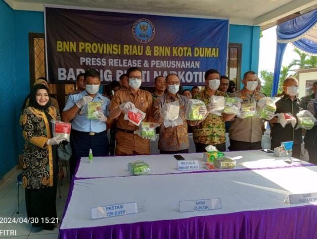 BNN Provinsi Riau Bersama BNN Kota Dumai Adakan Press Release Pemusnahan Barang Bukti Narkotika.