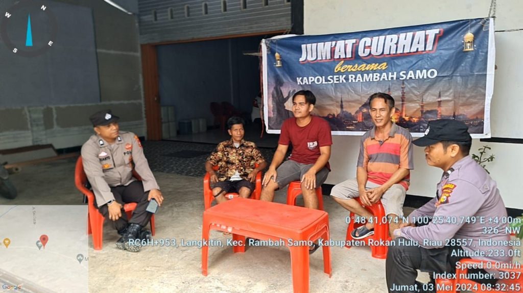 Program Jumat Curhat Quick Wins Presisi Polri (JC-QWPP) Tahun 2024 bersama Personil Polsek Rambahsamo Polres Rokan Hulu (Rohul) di Warung H EDI Desa Rambah Samo, Jum’at (3/5/2024) sekitar pukul 08.45 Wib.