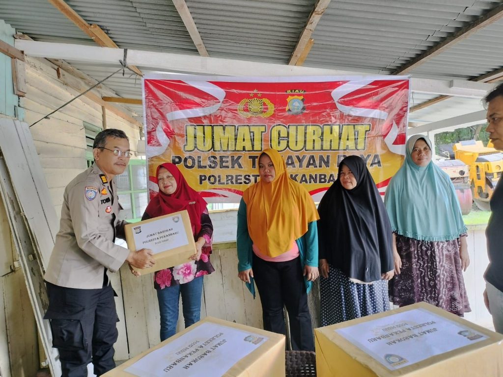 Tim Jum’at Curhat Polresta Pekanbaru melaksanakan program Jum’at Curhat menyampaikan pesan-pesan Kambtibmas diwilayah hukum Polsek Tenayan Raya kota Pekanbaru, Jum’at (10/05/2024).
