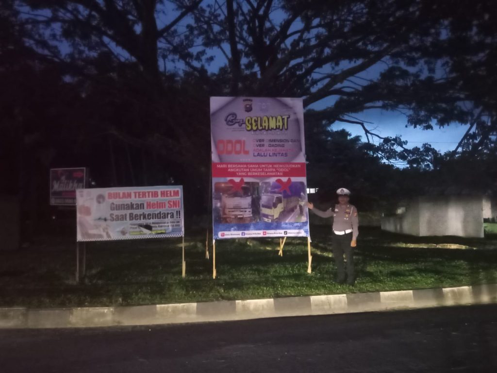 Sat Lantas Polres Kuansing Gelar Pemasangan Baliho Himbauan Bung Selamat 2024