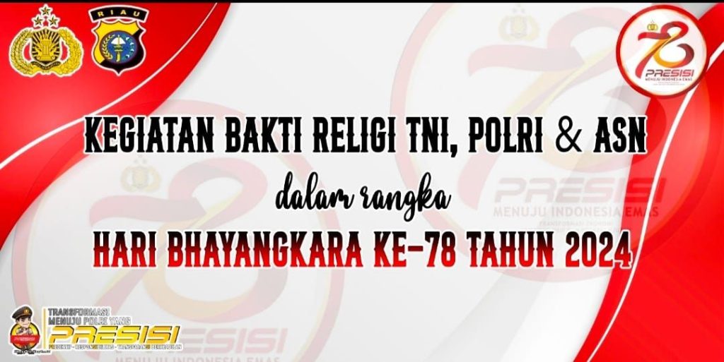 Pekanbaru, Mediasynergi86.id- Dalam rangka memperingati Hari Bhayangkara Ke 78 tahun 2024, Polresta Pekanbaru bersama Polsek Payung Sekaki melaksanakan Kegiatan Bhakti Religi TNI, POLRI dan ASN diwilayah hukum Polsek Payung Sekaki, Jum’at (07/06/2024).