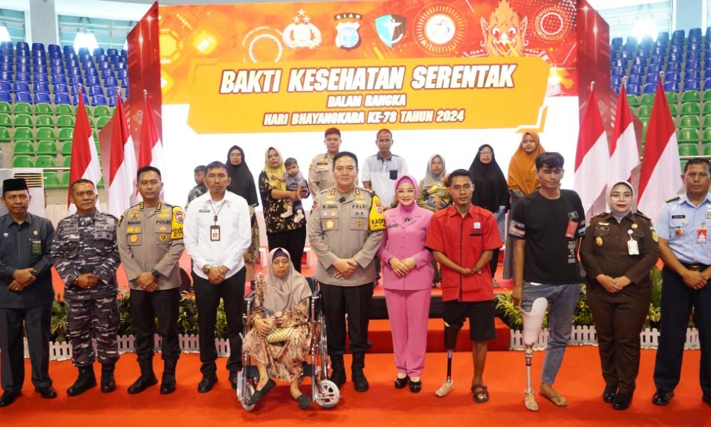 Mediasynergi86.id,Pekanbaru – Polda Riau menyelenggarakan acara bakti kesehatan massal dalam rangka memperingati Hari Bhayangkara ke-78 pada Rabu, 26 Juni 2024. Acara yang berlangsung di Gelanggang Olahraga Remaja, Jalan Jenderal Sudirman, Pekanbaru, dihadiri oleh ribuan masyarakat dan berbagai pejabat terkemuka.