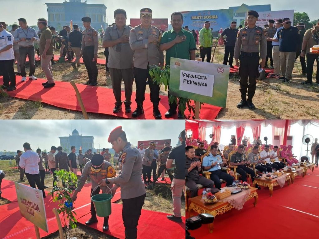 Kapolresta Pekanbaru Kombes Pol Jeki Rahmat Mustika S.I.K menyampaikan, kegiatan penanaman pohon serentak Polri tersebut dalam rangka HUT Bhayangkara ke-78 Tahun 2024.