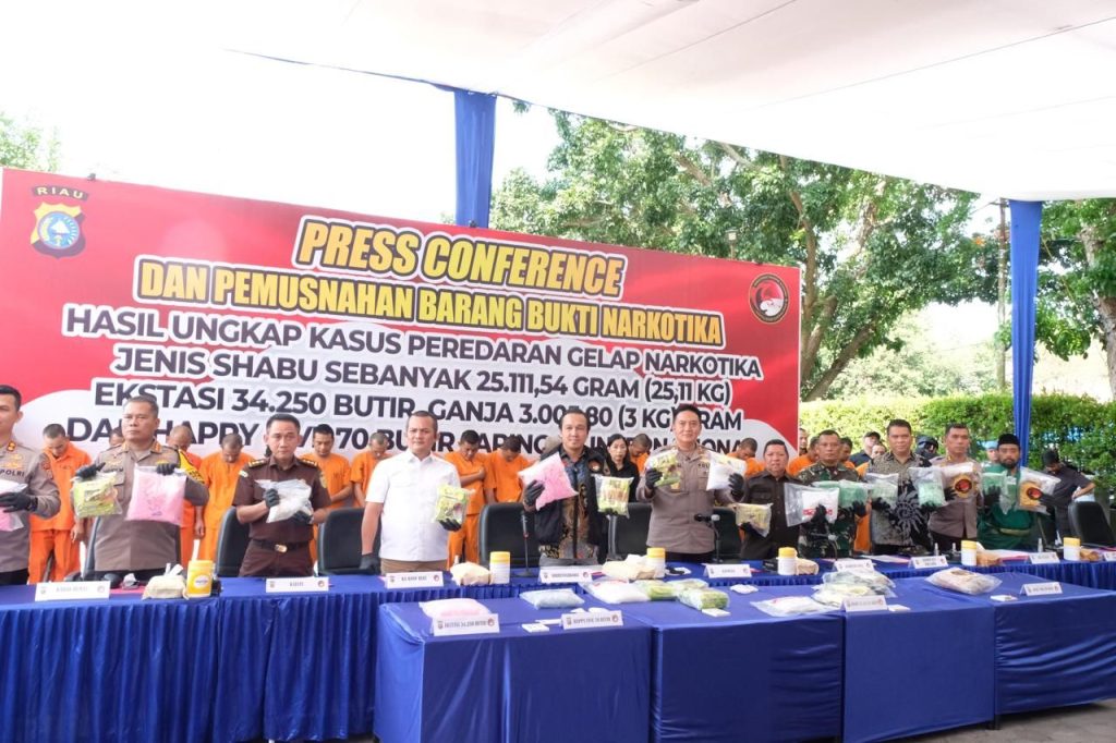 Ditresnarkoba Polda Riau Musnahkan 25 Kg dan 34 Ribu Butir Pil Ekstasi