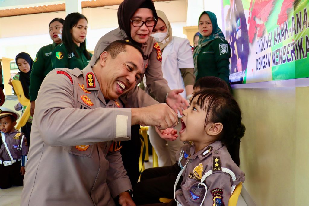 Pukul 08.30 WIB, dimulai dengan pemberian tetesan pertama vaksin polio kepada anak-anak TK Kemala Bhayangkari III oleh Kapolresta Pekanbaru, Kombes Pol. Jeki Rahmat Mustika, S.I.K.