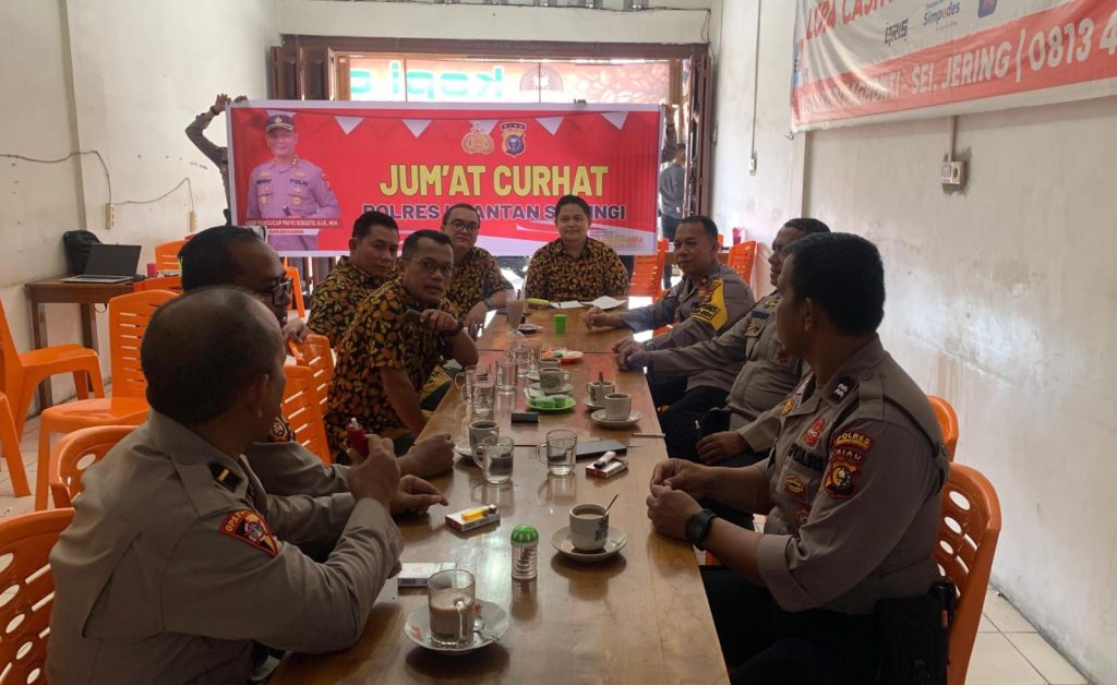 TELUKKUANTAN,Mediasynergi86.id- Polres Kuantan Singingi (Kuansing) melaksanakan kegiatan “Jum’at Curhat” di Kedai Kopi Chagonti, Kecamatan Kuantan Tengah, Kabupaten Kuansing. Pada hari Jumat (2/8/2024), pukul 09.00 WIB, Acara ini dipimpin oleh Wakapolres Kuansing, Kompol Robet Arizal, S.Sos, dihadiri oleh Kasat Samapta AKP Repriadi, SE, Kanit Dalmas Ipda Teguh Karyono, SH, Kanit Patroli Aiptu Syaidina Ali, dan Kanit Pam Ovid Aiptu Arry.
