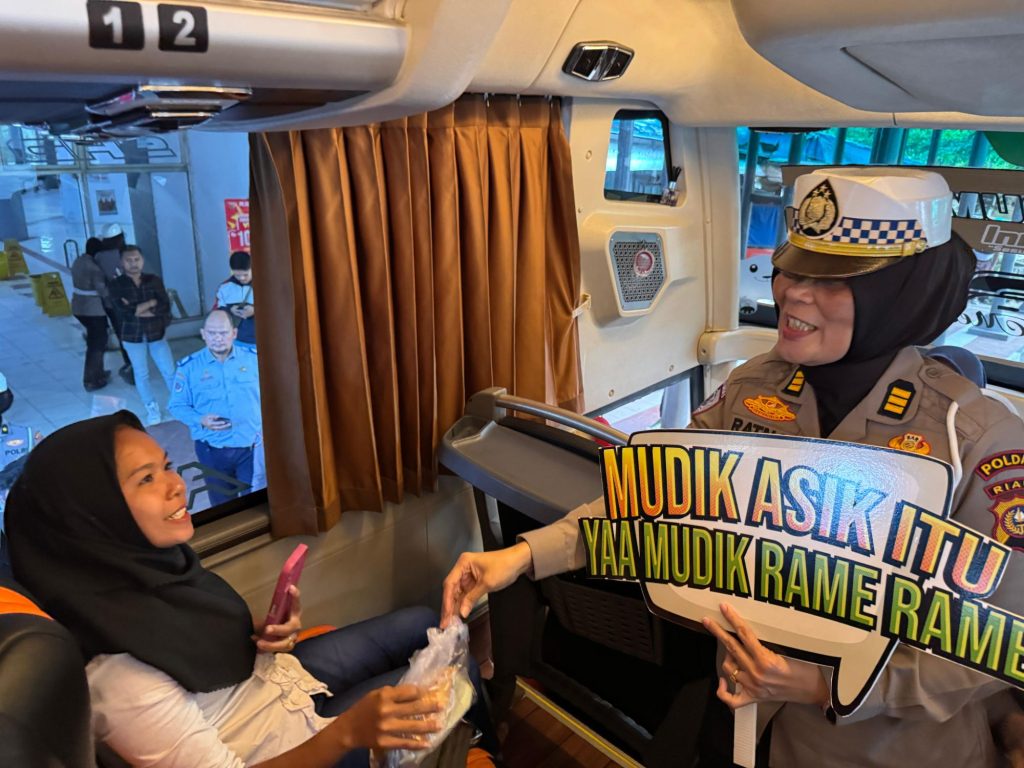 Kegiatan tersebut dipimpin langsung oleh Kompol Dwi Krismiyati, Kasi Fasmat Subdit Regident Ditlantas Polda Riau, yang menyampaikan pesan keselamatan kepada para pemudik. Menurutnya, kegiatan ini merupakan wujud nyata sinergi antar instansi terkait untuk mendukung kelancaran arus mudik dan menjaga keselamatan di jalan, Senin (24/03/2025)