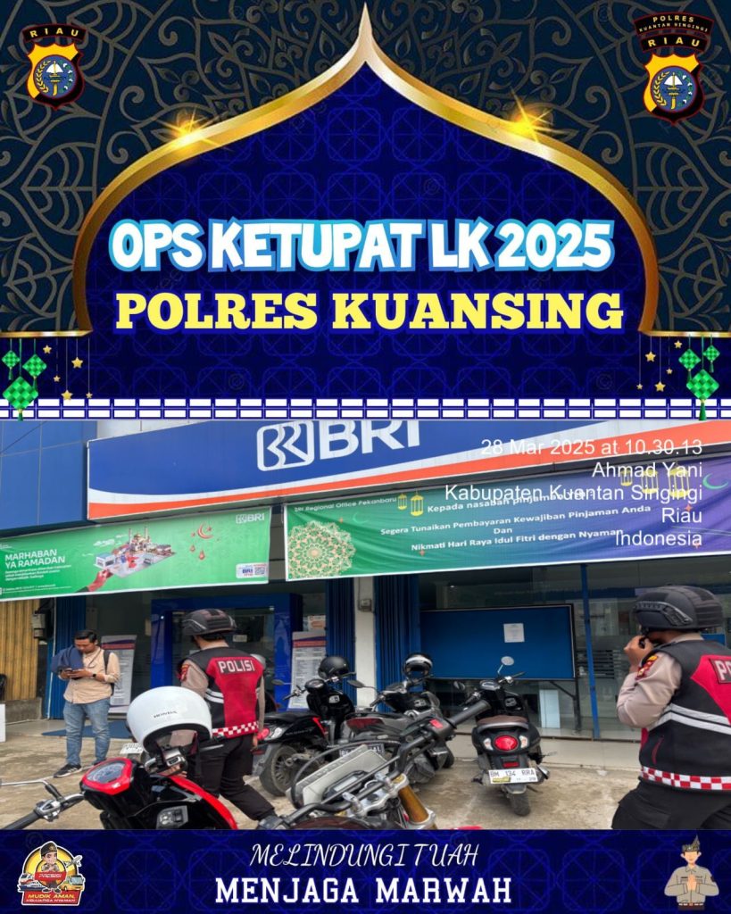 KUANTANSINGINGI,Mediasynergi86.id– Dalam rangka Ops Ketupat Lancang Kuning 2025 menjaga keamanan dan ketertiban masyarakat (Harkamtibmas), serta mengantisipasi potensi gangguan kamtibmas selama periode mudik Lebaran, Satuan Samapta (Sat Samapta) Polres Kuansing melaksanakan patroli ke sejumlah titik keramaian pada Jumat (28/3/2025) siang.