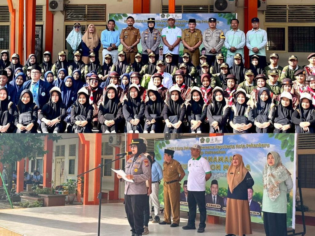 Kapolresta Pekanbaru Kombes Pol Jeki Rahmat Mustika, S.I.K., M.H., melalui Kapolsek Limapuluh AKP Viola Dwi Anggreni, S.I.K., hadir memimpin kegiatan tersebut. Turut serta dalam kegiatan ini Sekcam Sail Almizar, Kepala MTsN 1 Pekanbaru Agus Salim Tanjung, S.Pd., M.A., Wakil Kepala Sekolah Jamaris, para guru dan staf MTsN 1, Lurah Cinta Raja Arif, serta personel Bhabinkamtibmas.