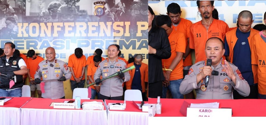 Hal itu ditegaskan Wakapolda Riau Brigjen Pol Jossy Kusumo saat pimpin konferensi pers Operasi Premanisme Lancang Kuning 2025, Kamis (15/5/2025), yang dihadiri oleh, Dir Reskrimum, Dir Resnarkoba, Kabid Humas dan Kabid Propam Polda Riau.