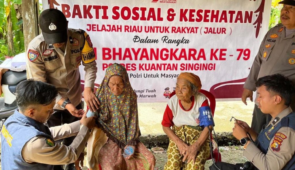 Polres Kuansing Gelar Baksos dan Pemeriksaan Kesehatan Gratis di Desa Pulau Beralo dalam Rangka Hari Bhayangkara ke-79