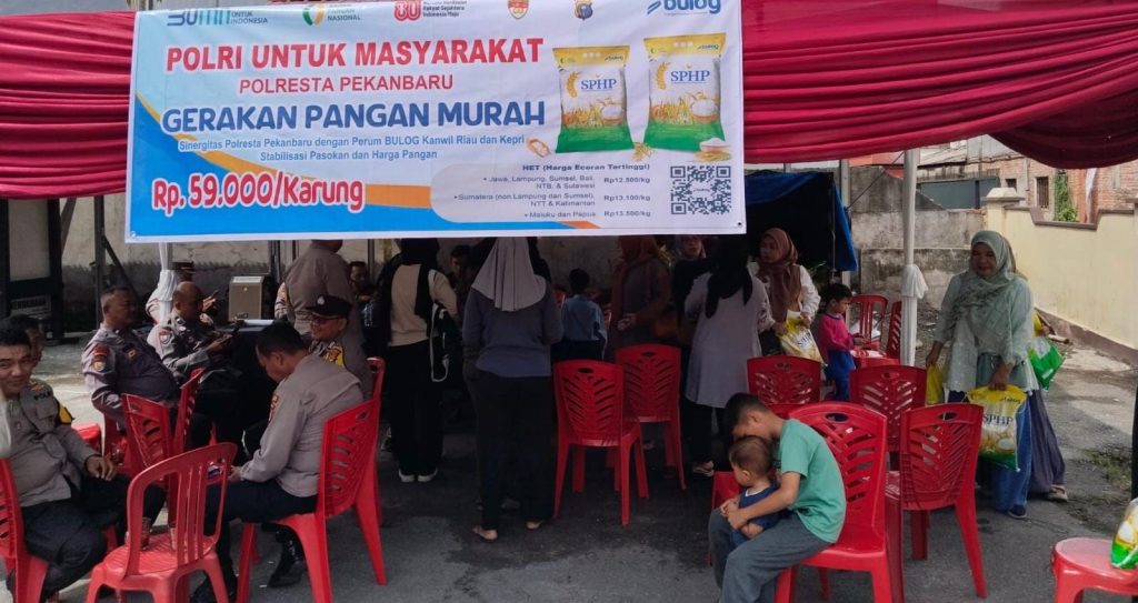 “Gerakan pangan murah Polri ini merupakan bentuk sinergitas Polresta Pekanbaru bersama Perum Bulog Kanwil Riau dan Kepri dalam menjaga stabilisasi pasokan dan harga pangan, khususnya beras, Kami apresiasi kerja keras seluruh personil terutama para bhabinkamtibmas kami disetiap kelurahan berhasil mensosialisasikan secara masiv  dan mendatangkan warga untuk hadir dan membeli beras bermutu dengan harga terjangkau ,” ujar KP IHUT