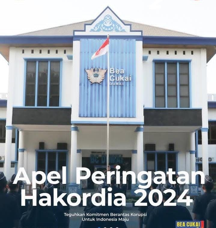 Mediasynergi86.id-Dumai (09/12) Bea Cukai Dumai mengadakan Apel dalam Rangka Peringatan Hari Anti Korupsi Dunia (Hakordia) Tahun 2024. Bertempat di Lapangan Kantor Bea Cukai Dumai, bertindak sebagai Pembina Apel yaitu Kepala Kantor KPPBC TMP Dumai. Dalam kesempatan ini, Kepala Kantor mengingatkan kepada seluruh Pegawai KPPBC TMP Dumai untuk selalu berpegang teguh pada prinsip Integritas dalam melaksanakan kegiatan pelayanan dan pengawasan.