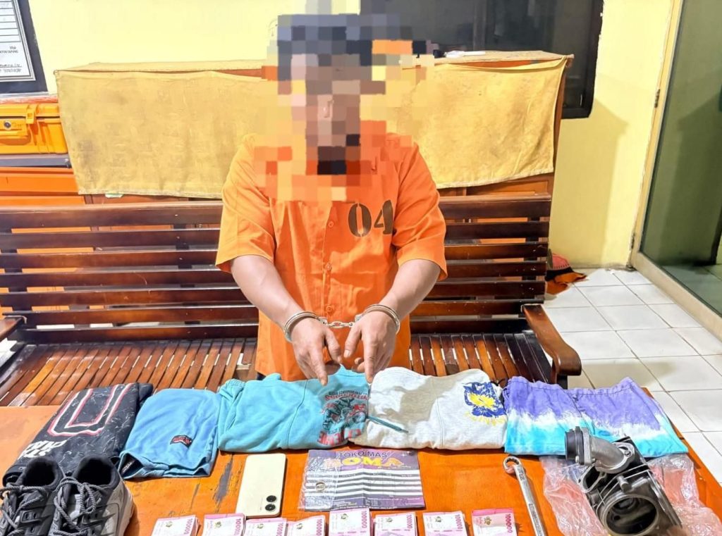 Dari penangkapan pelaku berhasil kita amankan uang tunai Rp 8,2 Juta, celana pendek warna ungu campur biru, cincin emas 21 karat seberat 2 gram, selembar kwitansi pembelian cincin emas 21 karat, HP dan barang bukti lainnya.